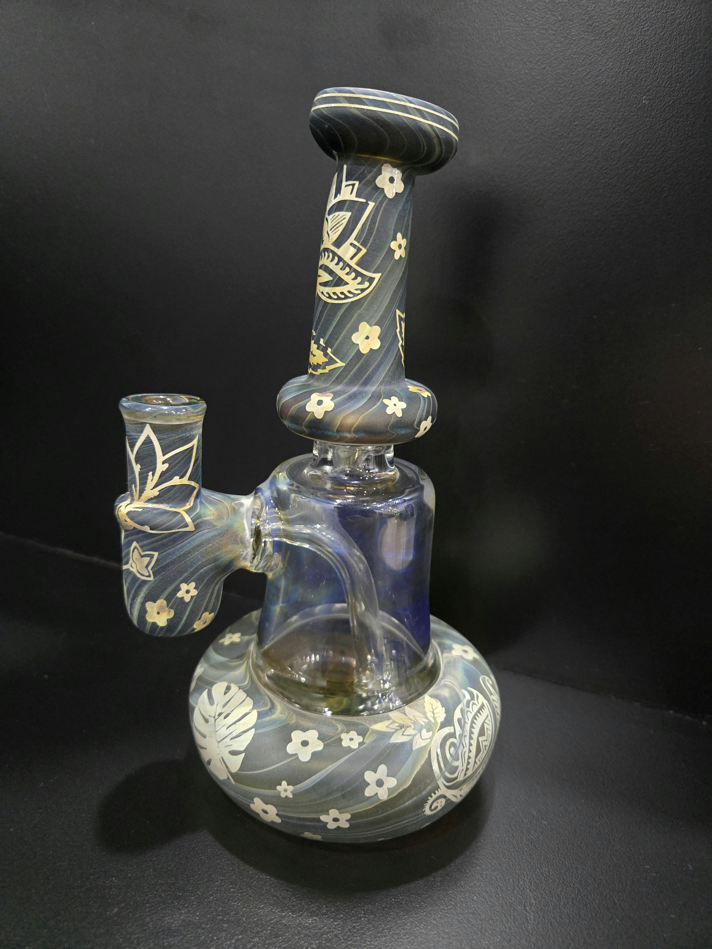 black and gold leaf Bubbler (long island glass)